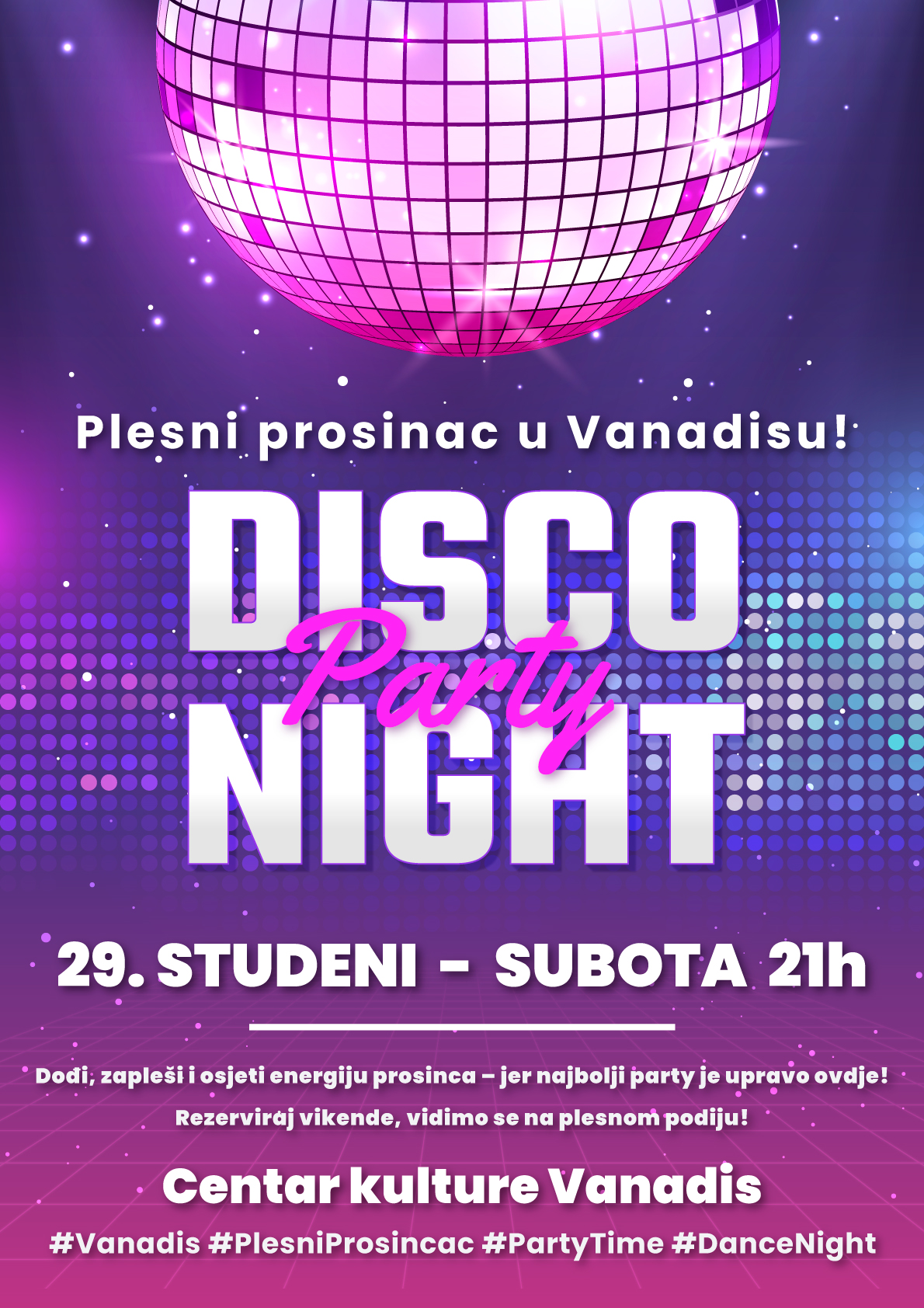 Prosinac u Centru kulture Vanadis započinje u plesnom ritmu. Pred nama je mjesec ispunjen glazbom, svjetlima i nezaboravnom atmosferom, a sve kreće prvom plesnom večeri koja će se održati u subotu, 29. studenoga, s početkom u 21 sat.