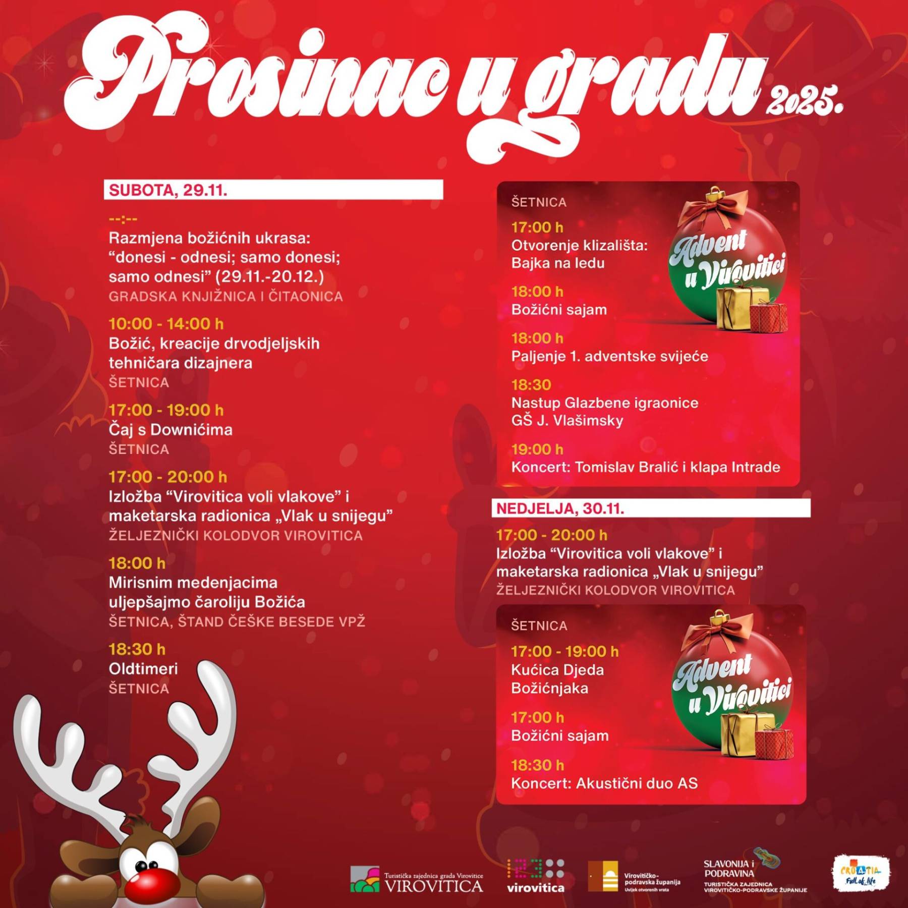 Prvi adventski vikend nastavlja se i u nedjelju, 30. studenoga, kada su na rasporedu: